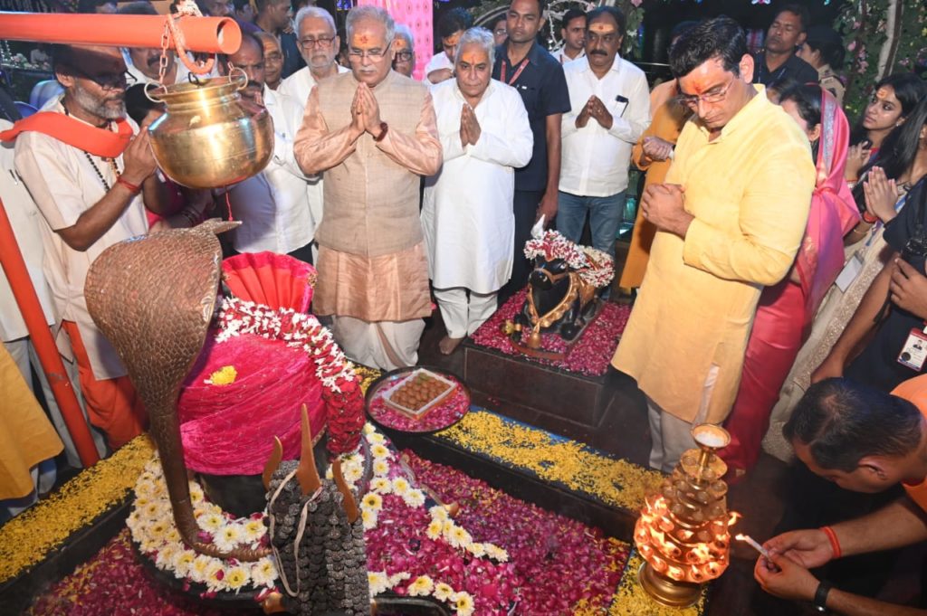 मुख्यमंत्री श्री भूपेश बघेल आज भिलाई नगर के सेक्टर-7 स्थित शिवधाम तालाब में महारुद्राभिषेक कार्यक्रम में शामिल हुए। मुख्यमंत्री श्री बघेल ने भगवान शिव की पूजा अर्चनाकर अभिषेक किया और प्रदेशवासियों के सुख-समृद्धि व खुशहाली की कामना की। उन्होंने इस बढ़िया आयोजन के लिए पूरे टीम को बधाई दी।