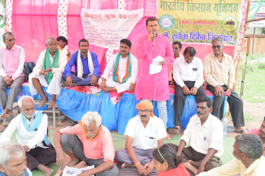 सहित तमाम विभिन्न छोटी-बड़ी समस्याओं पर किसानों ने खुलकर चर्चा की। भूख हड़ताल सफल बनाने के लिए अन्नजल का त्याग कर युवा प्रदेशाध्यक्ष ढालेश साहू व जिलाध्यक्ष बालाराम साहू के नेतृत्व में हड़ताल किया गया। भूख हड़ताल को समाप्त करने के लिए सामाजिक संगठनों के प्रमुख व राजनीति संगठन के साथियों द्वारा दूध पिला कर आंदोलन को समाप्त किया गया। साथ ही निर्णय लिया गया की उक्त मामले पर छत्तीसगढ़ शासन द्वारा कोई मांग पुरा नहीं किया जाता है। तो कांग्रेस के वरिष्ठ नेता राहुल गांधी जी से मुलाकात किया जाएगा और छत्तीसगढ़ के किसानों से विभिन्न खेती किसानी से जुड़े हुए समस्याओं पर चर्चा की जाएगी । आंदोलन में जय जवान जय किसान, हमारी मांगे पूरी करो, जैसे विभिन्न तरह के नारे लगे। जिसमें प्रचारमंत्री भाकियू सुभाष सरकार व वरिष्ठ किसान साथी आत्माराम साहू, पंकज पांडे, कीर्तन साहू, कमल साहू, कांतिलाल देशमुख, गौतम साहू, प्यारे लाल यादव, कुलंजन साहू सहित सैकड़ों की संख्या में किसान भाई,महिला, युवा, बच्चों सहित सभी ने समर्थन दिया।