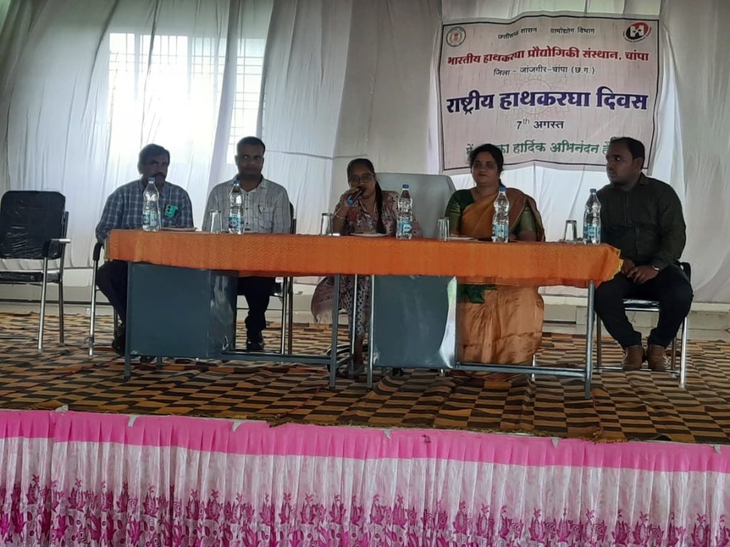 विद्यार्थी जीवन में कठिन परिश्रम करने से सफलता जरूर मिलती है और आप जो शिक्षा प्राप्त कर रहे हैं उसी में अपना भविष्य बनाते हैं तो फिर आपको कोई कामयाबी छूने से नहीं रोक सकता है। यह बात सोमवार को जिला पंचायत मुख्य कार्यपालन अधिकारी डॉ. ज्योति पटेल ने भारतीय हथकरघा प्रौद्योगिकी संस्थान चांपा द्वारा आयोजित 9 वें राष्ट्रीय हथकरघा दिवस पर आयोजित कार्यक्रम अवसर पर बतौर मुख्य अतिथि कही। इसके पूर्व उन्होंने राष्ट्रपिता महात्मा गांधी जी, माता सरस्वती के चित्र पर माल्यार्पण एवं दीप प्रज्जवलन करते हुए कार्यक्रम की शुरूआत की। उन्हांेने इस दौरान हथकरघा संस्थान द्वारा लगाई गई प्रदर्शनी का अवलोकन भी किया।