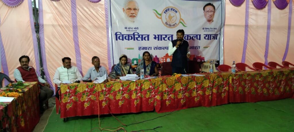 सांसद प्रतिनिधी थानसिँह मंडावी ने कहा कि केन्द्र सरकार की जन कल्याण कारी योजनाओं को जन जन तक पहुंचाने के लिए प्रधान मंत्री नरेन्द्र मोदी ने विकसित भारत संकल्प यात्रा के माध्यम से केन्द्र सरकार व राज्य सरकार की महत्वकांक्षी योजनाओं को शहरी एवम ग्रामीण क्षेत्रों में प्रत्येक लोगो तक पहुंचा कर उसका लाभ दिलाने के उद्देश्य से विकसित भारत संकल्प यात्रा शिविर का आयोजन किया जा रहा है शिविर में ग्रामीणों को शासन की विभिन्न योजनाओं की जानकारी दी गई, इनमे प्रधान मंत्री विश्वकर्मा योजना, प्रधान मंत्री अटल आवास योजना, उज्ज्वला योजना, प्रधान मंत्री स्वानिधि योजना, आयुष्मान कार्ड, किसान सम्मान निधि सहित हितग्राहियों से उक्त योजनाओं का लाभ प्रदाय किए जाने के लिए आवेदन लिया गया। यह शिविर जागरूकता लाने के लिए देश का सबसे बड़ा राष्ट्र व्यापी अभियान है शिविर में प्रधान मंत्री उज्ज्वला योजना के तहत 05 हितग्राहियों को गैस सिलेंडर एवम आयुष्मान कार्ड वितरण किया गया। इस अवसर पर पूर्व सरपंच घना राम साहू, पंचायत सचिव आशीष शुक्ला, सतानंद हिरवानी, भुवन साहु, सुरेन्द्र हिरवानी, तुलसी राम, प्रेमा साहू, हेमा साहू, रेणुका साहू, ममता राव, रजनी साहू, वंदना साहू, जयंती साहू, मंजु, नोडल अधिकारी दिनेश नेताम, पशुपालन विभाग दौलत राम चंद्राकर, बलराम साहू, राजस्व विभाग वीरेन्द्र ठाकुर, रोजगार सहायक तुलसी राम सिन्हा,कृषि विस्तार अधिकारी संदीप चंद्राकर, भूपेन्द्र साहु, अमित साहू सहित ग्राम वासी उपस्थित थे।