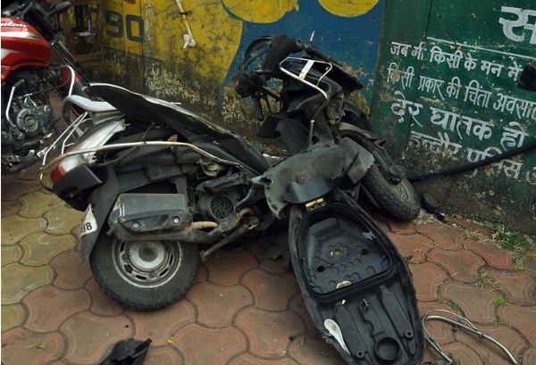 टक्कर ऐसी कि खंभा मुड़ गया