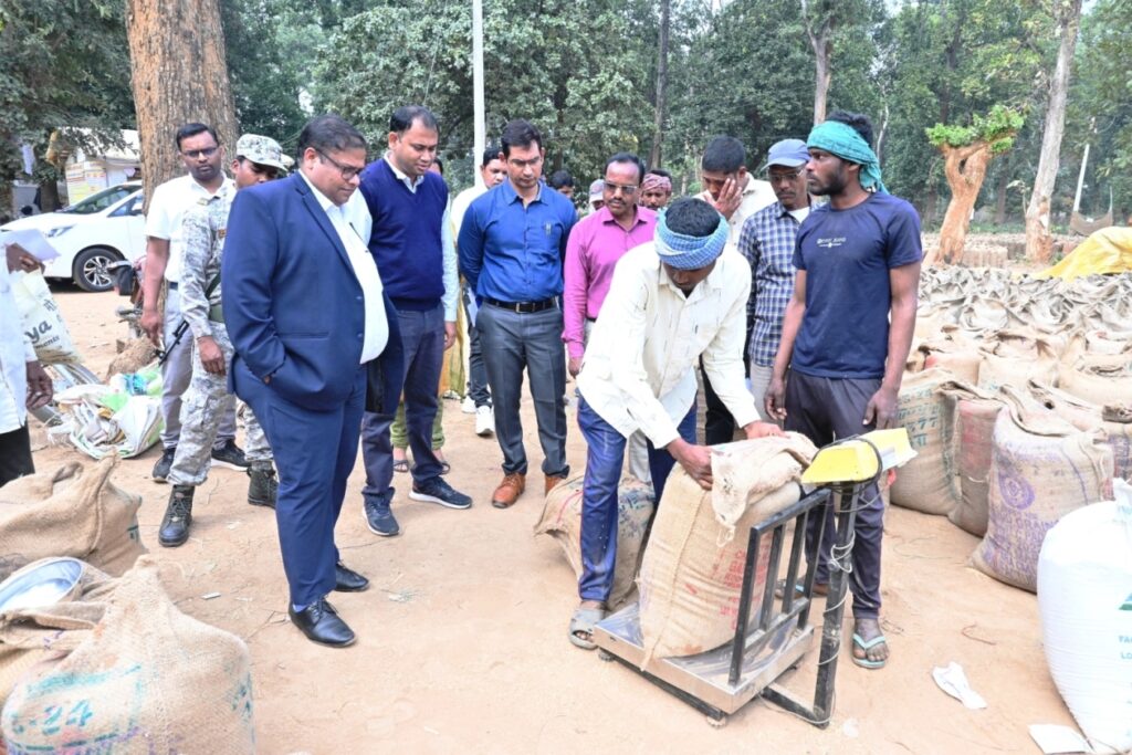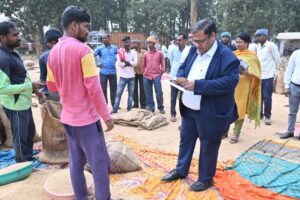 गरियाबंद:- जिले में पदस्थापना के बाद कलेक्टर दीपक कुमार अग्रवाल ने आज समर्थन मूल्य पर जारी धान खरीदी का निरीक्षण करने धान खरीदी केन्द्र मरौदा पहुंचे। केन्द्र में जारी धान खरीदी की व्यवस्थाओं का जायजा लेते हुए मौके पर मौजूद अधिकारी-कर्मचारियों से किसानों से सुचारू तरीके से धान खरीदी की सुविधाओं का भी मूल्याकंन किया। धान खरीदी केन्द्र में उन्होंने नमी मापक यंत्र से धान का नमी मापकर देखा,साथ ही धान की बोरियों में भी हाथ लगाकर नमी आदि की जांच की,साथ ही अपने सामने ही धान तौलाई का अवलोकन किया।