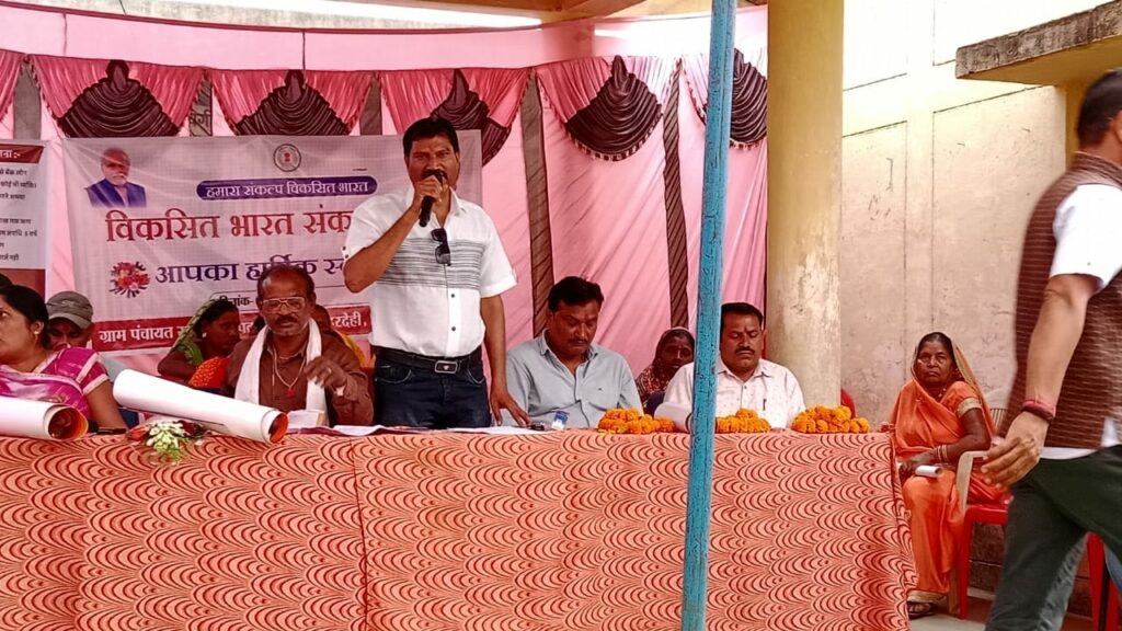 गुण्डरदेही/ विकसित भारत संकल्प यात्रा के तहत ग्राम पंचायत साजा में रथ का ग्रामीणों ने जोरदार स्वागत किया गया कार्यक्रम के मुख्य अतिथि सांसद प्रतिनिधी थानसिंह मंडावी थे, अध्यक्षता सरपंच रोहित निर्मलकर् ने किया, विशेष अतिथि जनपद सदस्य तारिणी चंद्राकर, पूर्व सरपंच देवेन्द्र यदु, पूर्व सरपंच घना राम साहू, उप सरपंच वेणु राम साहू, संतोष चंद्राकर थे। मुख्य अतिथि सांसद प्रतिनिधि मंडावी ने कहा कि भारत को विकसित करना हमारा संकल्प हैं इस लिए हमारे देश के प्रधान मंत्री नरेन्द्र मोदी ने इस संकल्प को पूरा करने के लिए ,, विकसित भारत संकल्प यात्रा,, की शुरुआत की । केन्द्र सरकार की जन कल्याणकारी योजनाओं को जन जन तक पहुंचाने एवम इनसे लाभ लेने वाले हितग्राहियों से संवाद करने के उद्देश्य से प्रारंभ की गई।