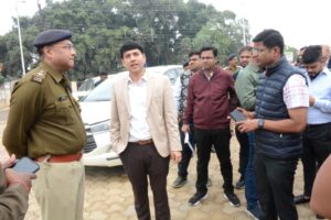 जांजगीर-चांपा 18 जनवरी 2024/ कलेक्टर श्री आकाश छिकारा और पुलिस अधीक्षक श्री विजय अग्रवाल ने 22 जनवरी को अयोध्या में होने वाले श्री राम मंदिर प्राण प्रतिष्ठा के अवसर पर शिवरीनारायण में होने वाले कार्यक्रम की तैयारियों का गुरूवार को अवलोकन किया। कार्यक्रम स्थल पर उन्होंने मंच निर्माण, बैठक व्यवस्था, सुरक्षा व्यवस्था, स्वास्थ्य व्यवस्था, पेयजल, बिजली, साफ-सफाई, पार्किंग व्यवस्था, बेरिकेडिंग करने के संबंध में आवश्यक दिशा निर्देश दिए। इस अवसर पर अतिरिक्त पुलिस अधीक्षक श्री अनिल सोनी, एसडीएम श्री ज्ञानेंद्र सिंह, डिप्टी कलेक्टर श्री संदीप ठाकुर सहित संबंधित अधिकारी-कर्मचारी उपस्थित थे।