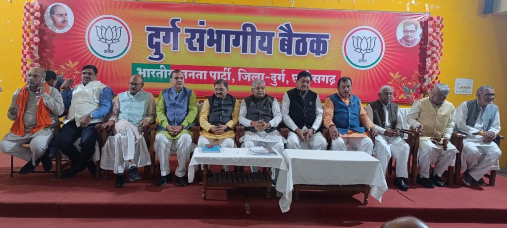 संभागीय बैठक में स्वागत भाषण प्रस्तुत करते हुए जिला भाजपा अध्यक्ष जितेन्द्र वर्मा ने कहा कि बहुत ही गौरव का विषय है कि प्रभु रामलला के दर्शनों के लिए पहला जत्था दुर्ग से रवाना हो रहा है। रामभक्तों को रामलला के दर्शन कराने और उनकी सेवा का अवसर भाजपा कार्यकर्ताओं को मिला है, ये सुखद और सौभाग्य का अवसर है। हर कार्यकर्ता अपनी जवाबदेही के अनुसार तैयार रहे, इसके लिए पूरी तरह से तैयारी को लेकर बैठकों का दौर भी चल रहा है। संभागीय बैठक का संचालन जिला उपाध्यक्ष राजेन्द्र कुमार पाध्ये ने किया एवं आभार जिला महामंत्री एवं विधायक ललित चंद्राकर ने किया।