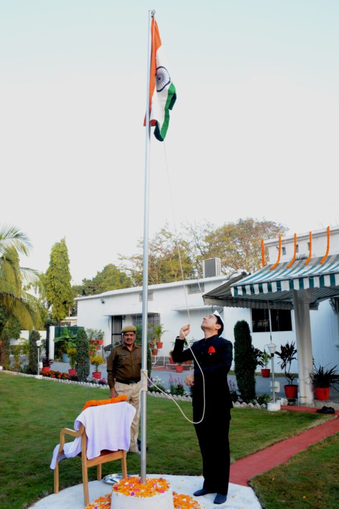 कलेक्टर श्री आकाश छिकारा ने गणतंत्र दिवस के अवसर पर कलेक्टर निवास में ध्वजारोहण किया। इस दौरान उन्होंने उपस्थित अधिकारी-कर्मचारियों को गणतंत्र दिवस की बधाई एवं शुभकामनाएं दी।
