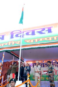 जांजगीर-चांपा 26 जनवरी 2024/ जिले में 75वें गणतंत्र दिवस समारोह हर्षाेल्लास के साथ मनाया गया। मुख्य अतिथि बिलासपुर विधायक श्री अमर अग्रवाल ने हाई स्कूल मैदान जांजगीर में आयोजित जिला स्तरीय कार्यक्रम में ध्वजारोहण कर परेड की सलामी ली। कार्यक्रम में हर्ष फायर के साथ शांति एवं उत्साह के प्रतीक गुब्बारे आसमान में छोड़े गए। मुख्य अतिथि ने परेड का निरीक्षण किया गया। उन्होंने माननीय मुख्यमंत्री के द्वारा आमनागरिको के नाम संदेश का वाचन किया। मुख्य अतिथि विधायक श्री अमर अग्रवाल ने शहीद परिवार के सदस्यों का शॉल व श्रीफल भेंटकर सम्मानित किया । उन्होंने उत्कृष्ट कार्य करने वाले विभिन्न विभागों के अधिकारियों कर्मचारियों को प्रशस्ति पत्र प्रदान कर सम्मानित किया।