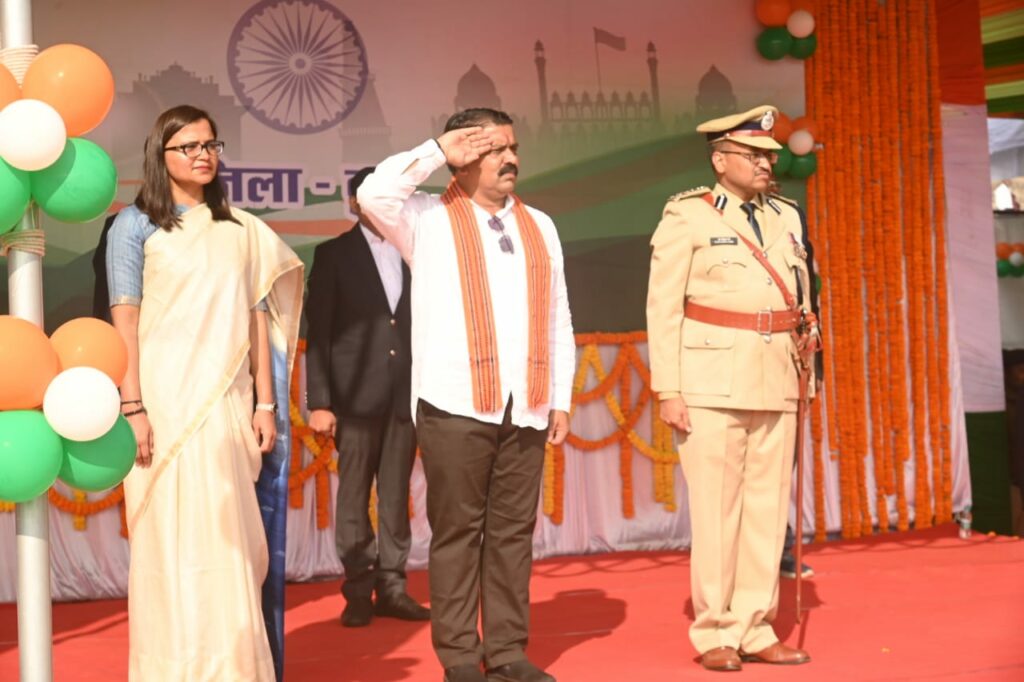 दुर्ग, 26 जनवरी 2024/ गणतंत्र दिवस समारोह दुर्ग जिले में पूरे हर्षोल्लास के साथ मनाया गया। मुख्य अतिथि प्रदेश के उप मुख्यमंत्री श्री विजय शर्मा ने दुर्ग के रवि शंकर स्टेडियम में आयोजित 26 जनवरी गणतंत्र दिवस के मुख्य समारोह में ध्वजारोहण कर परेड की सलामी ली। इस अवसर पर उन्होंने मुख्यमंत्री श्री विष्णुदेव साय का प्रदेश की जनता के नाम संदेश का वाचन किया। उन्होंने उल्लास एवं उमंग के प्रतीक रंगीन गुब्बारे आसमान में छोड़े। परेड द्वारा हर्ष फायर एवं राष्ट्रपति की जय जयकार की गई। मुख्य अतिथि श्री शर्मा ने कलेक्टर सुश्री ऋचा प्रकाश चौधरी और एसएसपी श्री आर.जी. गर्ग के साथ परेड का निरीक्षण किया और आम नागरिकों का अभिवादन स्वीकार किया। परेड कमाण्डर रक्षित निरीक्षक श्री नीलकंठ वर्मा के नेतृत्व में जिला पुलिस बल, छत्तीसगढ़ सशस्त्र बल, एनसीसी जुनियर एवं सीनियर, रेडक्रॉस और स्काउट गाइड के 11 प्लाटून द्वारा आकर्षक मार्च पास्ट करते हुए सलामी मंच के सामने से गुजरे। तत्पश्चात् मुख्य अतिथि श्री शर्मा प्लाटून कमाण्डरों से परिचय प्राप्त किया। इस मौके पर उन्होंने शहीद के परिजनों को शॉल एवं श्रीफल भेंट कर सम्मान किया। इस अवसर पर नगर के विभिन्न विद्यालयों के छात्र-छात्राओं ने देश-भक्ति गीतों पर आधारित सांस्कृतिक कार्यक्रम की प्रस्तुति दिये। समारोह के समापन पूर्व मुख्य अतिथि प्रदेश के उप मुख्यमंत्री श्री विजय शर्मा ने उल्लेखनीय कार्य करने वाले विभिन्न विभागों के अधिकारियों और कर्मचारियों को सम्मानित किया। समारोह में संभागायुक्त श्री सत्यनारायण राठौर, आईजी श्री बी.एन. मीणा, विधायक श्री गजेन्द्र यादव, श्री ललित चन्द्राकर, स्थानीय जनप्रतिनिधि, गणमान्य नागरिक, जिला एवं पुलिस प्रशासन के अधिकारी एवं कर्मचारी उपस्थित थे।