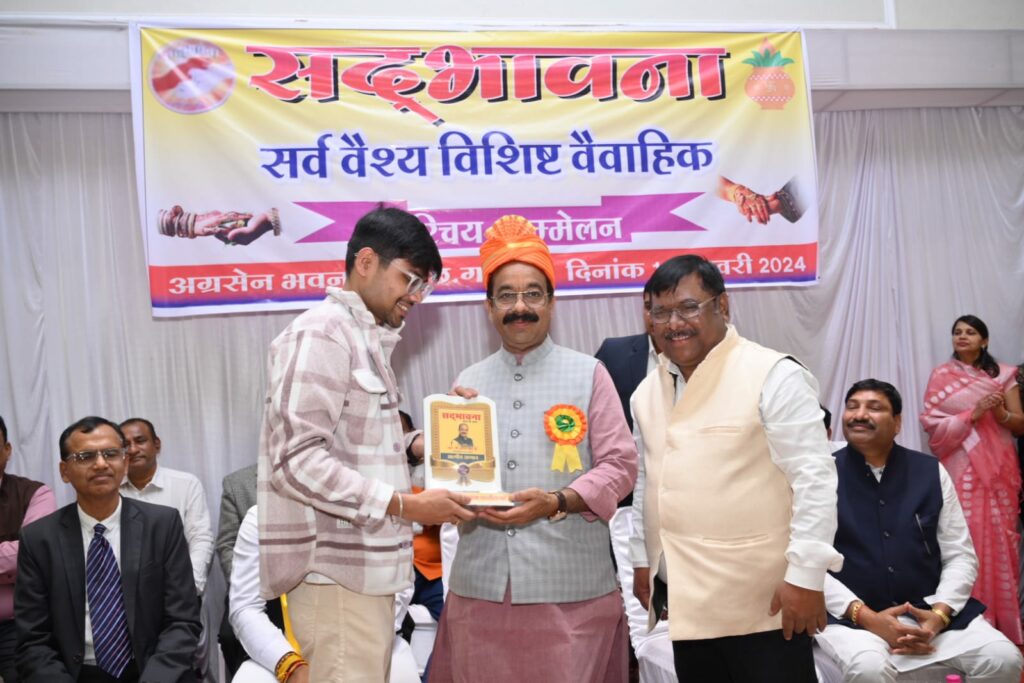 इस अवसर पर पूर्व केंद्रीय अध्यक्ष छत्तीसगढ़ अग्रवाल समाज श्री पुरूषोत्तम अग्रवाल, छत्तीसगढ़ अग्रवाल समाज श्री श्याम अग्रवाल, अग्रहरी समाज श्री सुजीत गुप्ता, कसौंधन समाज श्री सूर्यकांत गुप्ता, अग्रवाल समाज श्री कैलाश रूंगटा सहित सभी समाज के पदाधिकारीगण उपस्थित थे।