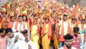 भिलाई टाउनशिप में सेक्टर 5 गणेश मंदिर से लेकर जयंती स्टेडियम मैदान तक की सड़क गुरुवार को भगवा रंग में सराबोर रही। सांसद विजय बघेल के संयोजन में 16 फरवरी से शुरू होने जा रहे श्रीराम कथा और हनुमान महायज्ञ से पहले आज भव्य कलश यात्रा निकाली गई। गणेश मंदिर से निकली भव्य कलश यात्रा की अगुवाई पाटेश्वर धाम के बाबा योगेश्वर राम बालक दास महात्यागी व सांसद विजय बघेल ने की। इस दौरान भक्तों का उमंग और उत्साह पूरे रास्ते भर देखते बना।