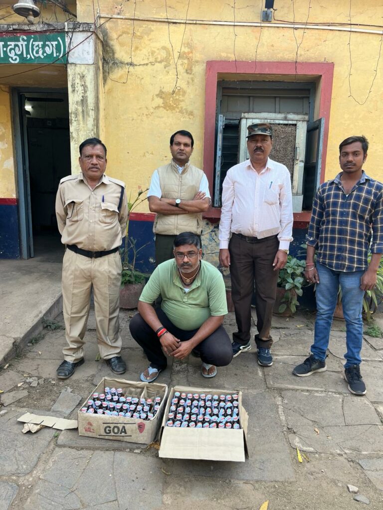 दुर्ग 21 फरवरी 2024/कलेक्टर सुश्री ऋचा प्रकाश चौधरी के निर्देश के परिपालन तथा सहायक आयुक्त आबकारी राजेश जायसवाल के मार्गदर्शन में जिला आबकारी अमला द्वारा 21 फरवरी 2024 को प्रातः गश्त के दौरान वृत्त- भिलाई 03 के अन्तर्गत ग्राम धनोरा में अवैध रूप से शराब के विक्रय/धारण की सूचना पर त्वरित एवं विधिवत् कार्यवाही कर आरोपी संतोष गिरी, साकिन – ग्राम धनोरा, जिला- दुर्ग (छ.ग.) के कब्जे से मध्यप्रदेश निर्मित विदेशी मदिरा कुल 83 नग गोवा व्हिस्की पाव, कुल मात्रा 14.94 बल्क लीटर (बाजार मूल्य 9130 रूपये) जप्त किया गाया। सहायक जिला आबकारी अधिकारी धीरज कन्नौजिया द्वारा आरोपी के विरुद्ध आबकारी अधिनियम की धारा 34(2) के तहत प्रकरण दर्ज किया गया है। उक्त प्रकरण में मुख्य आरक्षक फागू राम टण्डन, आरक्षक देव प्रसाद पटेल, वाहन चालक दुर्गा साहू एवं दुर्गेश का महत्वपूर्ण योगदान रहा।