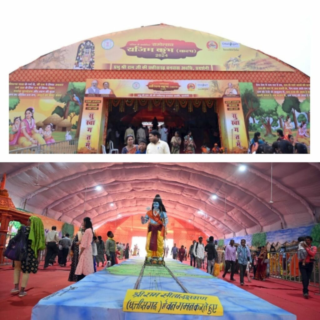 रायपुर, 26 फरवरी 2024/धर्मस्व एवं संस्कृति मंत्री बृजमोहन अग्रवाल की पहल से राजिम कुंभ की भव्यता 5 वर्ष बाद पुनः लौटी है। राजिम कुंभ कल्प 2024 मेला का आयोजन इस वर्ष रामोत्सव की थीम पर मनाया जा रहा है। राजिम कुंभ मेला स्थल में प्रभु श्री राम के जीवन चरित्र और उनके छत्तीसगढ़ वनवास अवधि पर आधारित जीवंत झांकी का प्रदर्शन किया जा रहा है, जोकि मेला में पहुंचने वाले समस्त श्रद्धालुओं को अपनी ओर आकर्षित कर रहा है। लोग धार्मिक सद्भाव और मर्यादा पुरुषोत्तम श्री राम के आदर्शाे को अनुभव कर इस झांकी आनंद उठा रहे हैं।