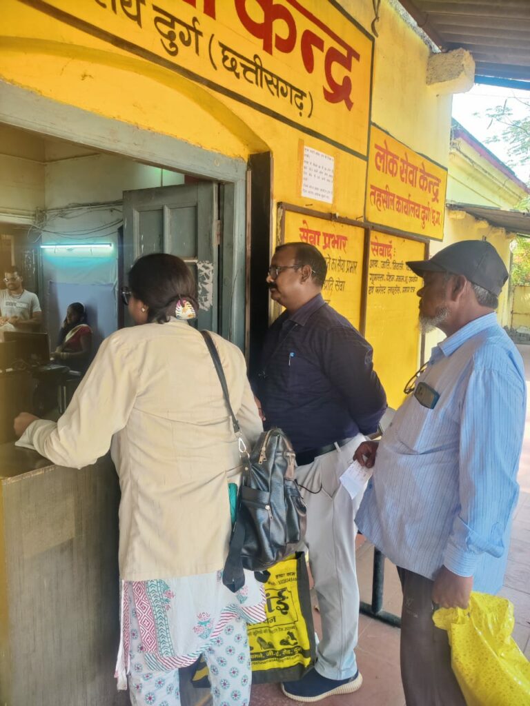 दुर्ग 11 मार्च 2024/ कलेक्टर सुश्री ऋचा प्रकाश चौधरी द्वारा लोक सेवा केंद्रों की आकस्मिक जांच किए जाने के निर्देशानुसार आज दुर्ग एसडीएम मुकेश रावटे और तहसीलदार प्रफुल्ल कुमार गुप्ता नें अलग अलग स्थानों में संचालित लोक सेवा केंद्रों की आकस्मिक जांच की। एसडीएम मुकेश रावटे ने सुपेला स्थित लोक सेवा केंद्र और तहसीलदार प्रफुल्ल गुप्ता ने तहसील ऑफिस दुर्ग स्थित लोक सेवा केंद्र की जांच की। तहसीलदार प्रफुल्ल कुमार गुप्ता ने तहसील कार्यालय स्थित लोक सेवा केंद्र में अपनी पहचान छुपाकर आवेदक बनकर निवासी प्रमाण पत्र बनाने आवेदन पेश किया और उसमें लगने वाले दस्तावेजों और लगने वाले शुल्क के संबंध में पूछताछ किया। संचालक कौशिल्या और राकेश यादव ने निवास, जाती, इनकम सेटिफिकेट में लगने वाले दस्तावेजों के बारे में सिलसिलेवार जानकारी दी। निर्धारित शुल्क के बारे में भी जानकारी उनके द्वारा दी गई। लोक सेवा केंद्र संचालक, दुर्ग एसडीएम मुकेश रावटे और तहसीलदार प्रफुल्ल कुमार गुप्ता को नहीं पहचान पाए। जांच में लोक सेवा केंद्र में सेवाओं की सूची और निर्धारित शुल्क की जानकारी प्रदर्शित होना पाया गया। एसडीएम और तहसीलदार ने लोक सेवा केंद्र संचालकों को केंद्र में आने वाले आवेदकों से अच्छा व्यवहार रखने और आवश्यक दस्तावेज ही लगवाने हिदायत दी। अनावश्यक रूप से अनुपयोगी दस्तावेज न लगवाने की सलाह दी।