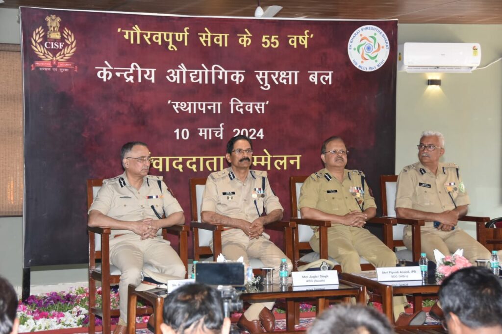 भिलाई, 10 मार्च 2024: 10 मार्च 2024 को लगभग 1230 बजे छत्तीसगढ़ के भिलाई में सीआईएसएफ क्षेत्रीय प्रशिक्षण केंद्र में आगामी 55वें सीआईएसएफ स्थापना दिवस के लिए एक प्रेस कॉन्फ्रेंस/कर्टेन रेज़र कार्यक्रम आयोजित किया गया । श्री पीयूष आनंद, विशेष महानिदेशक, सीआईएसएफ मुख्यालय ने इस कार्यक्रम की अध्यक्षता की। इस कार्यक्रम में श्री जगबीर सिंह, अपर महानिदेशक (दक्षिण), श्री कुंदन कृष्णन, अपर महानिदेशक (उत्तर), और श्री संजय प्रकाश, महानिरीक्षक (मध्य खंड) सहित सीआईएसएफ के अन्य वरिष्ठ अधिकारी भी उपस्थित थे।