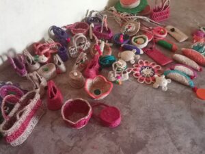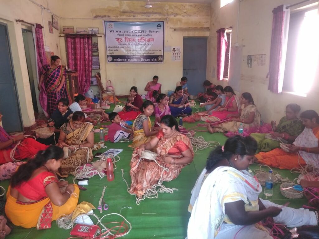 यह कार्यशाला तीन माह तक चलेगी। कार्यशाला में 30 महिलाओं को जूट से बने उत्पादों बनाने का प्रशिक्षिका भानुमति बघेल द्वारा तीन महीने तक प्रषिक्षण दिया जाएगा। कार्यशाला में स्वरोजगार के अवसर उपलब्ध कराने के उद्देश्य से गांव की 30 महिलाओं को प्रशिक्षण दिया जाएगा। तीन महीने की अवधि तक 3 हजार रुपये मासिक स्टाइपेड भी दिया जाएगा। आगे बताया की राष्ट्रीय जूट बोर्ड जूट उत्पादों के बारे में जागरूकता पैदा करने के लिए कई कार्यक्रम शुरू किए हैं।कार्यशाला के तहत महिलाओं को जूट से उत्पाद बनाने सिखाए जा रहे हैं। महिलाओं को जूट से बने बैग, शो पीस, चटाई, डोरमेट, बुक शोल्डर सहित अन्य चीजें बनाना सिखाया जा रहा है। इस अवसर पर प्रशिक्षकों ने बताया कि घर की जूट से साज सज्जा के सामान बनाने में इस्तेमाल किया जा सकता हैं।शुरू में जूट का प्रयोग सिर्फ रस्सी के रूप किया जाता था। लेकिन नई तकनीकों से इसके प्रयोग में चैंज हुए और इसे कपड़े और कालीनों के रूप में बुना जाने लगा हैं। इसका प्रयोग पैकेजिंग और थैलों के रूप में भी कर सकते हैं।से आम उपयोग है। पॉलिथीन और कागज के बैग से ज्यादा फायदेमंद होता है जूट बैग क्योंकि यह पॉलिथीन और कागज के बैग की तुलना में बहुत अधिक वजन ले जा सकता हैं।