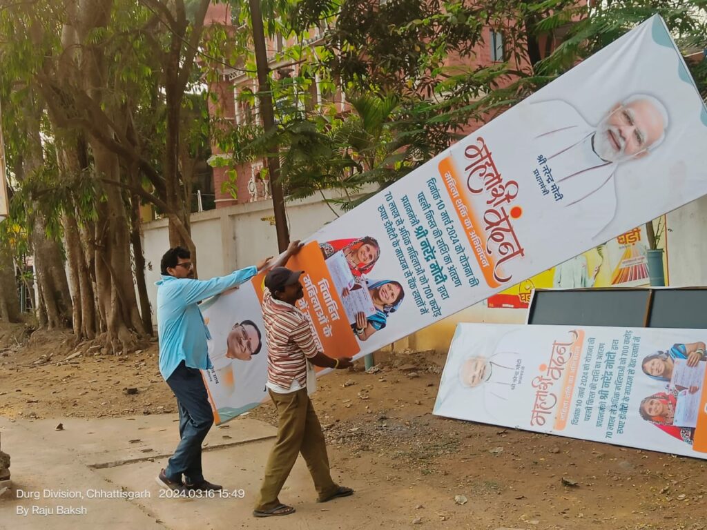 दुर्ग 18 मार्च 2024/ लोकसभा निर्वाचन 2024 की आदर्श आचरण संहिता प्रभावशील होते ही जिले में नगरीय निकायों एवं ग्रामीण क्षेत्रों में युद्ध स्तर पर सम्पत्ति विरूपण की कार्यवाही चल रही है। कलेक्टर एवं जिला निर्वाचन अधिकारी सुश्री ऋचा प्रकाश चौधरी के निर्देशानुसार नगरीय निकाय एवं जनपद क्षेत्रों में प्रशासनिक अमला द्वारा मुस्तैदी के साथ सम्पत्ति विरूपण की कार्यवाही की जा रही है। सार्वजनिक एवं निजी सम्पत्तियों से होर्डिंग्स, बैनर, पोस्टर एवं अन्य प्रचार सामग्री हटायी जा रही है। आचार संहिता लगने से प्रथम 24 घंटे में 5 हजार 874 होर्डिंग्स, बैनर, वॉल राईटिंग एवं अन्य प्रचार सामग्री हटायी गई। उक्त तिथि को 2623 सार्वजनिक सम्पत्ति और 2351 निजी सम्पत्तियों को बैनर, पोस्टर, होर्डिंग्स एवं अन्य प्रचार सामग्रियों सेे मुक्त किया गया। इसी प्रकार 18 मार्च 2024 को 4451 सार्वजनिक सम्पत्ति और 3598 निजी सम्पत्ति में कार्यवाही कर बैनर, पोस्टर, होर्डिंग्स एवं अन्य प्रचार सामग्री हटायी गई। सम्पत्ति विरूपण की कार्यवाही जिले के विधानसभा क्षेत्र पाटन, दुर्ग ग्रामीण, दुर्ग शहर, भिलाई नगर, वैशाली नगर एवं अहिवारा तथा साजा व बेमेतरा के आंशिक क्षेत्र में युद्धस्तर पर की जा रही है।