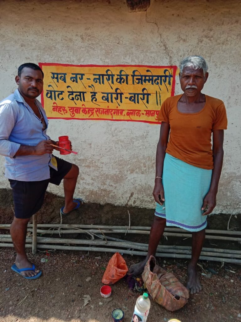 इस कार्यक्रम को जिला प्रशासन राजनंदगांव एवं नेहरू युवा केंद्र राजनांदगांव जिला युवा अधिकारी नितिन शर्मा के निर्देशन एवं ब्लॉक समन्वयक धनंजय साहू के नेतृत्व में विभिन्न ग्रामों के अंतर्गत अभियान चलाया जा रहा है। साथ ही नव मतदाताओ को पंजीयन के लिए विशेष रूप से मार्गदर्शन एवं स्वयं पंजीकरण का कार्य कर रहे हैं। हमें गर्व है कि हम स्वतंत्र भारत के नागरिक होते हुए लोकतंत्र का हिस्सा है और अपने मत के दान करते हुए इस लोकतंत्र को मजबूत बना रहे हैं। लेकिन आज भी समाज में कई अफवाह और भ्रमित कर रहे है और मतदाताओं को लालच देकर प्रभावित कर रहे है उन्हे सचेत करने का प्रयास कर रहे हैं। कई मतदाता ऐसे जो बिना सोचे समझे नोटा का बटन दबा देते है,या घर में रहकर वोट देने नही जाते उन्हे अपने वोट का महत्व बताकर जागरूक करने का प्रयास कर रहे है। नव विवाहित मतदाताओं के नया पंजीयन,पता का परिवर्तन,किसी भी प्रकार की वोटर आईडी में त्रुटि में समस्या के समाधान के लिए ग्राम के चयनित बीएलओ तक लेजाकर उनके समस्या का निराकरण किया जा रहा है। जिले में शत प्रतिशत मतदान हो इस उद्देश्य से स्विप समिति का गठन कर जिले में तेजी से मतदाता जागरूकता का कार्यक्रम चला रहे है। जिसमें जिला प्रशासन राजनादगांव को नेहरू युवा संगठन भी अपना सत प्रतिशत सहयोग प्रदान कर रहे हैं जिसमे 10 स्वयं सेवकों के द्वारा पूरे ब्लॉक स्तर पर मतदाता जागरूकता के अंतर्गत विभिन्न कार्यक्रम आयोजित कर रहे हैं। जो काफी प्रभावी साबित हो रहा है। जिसमें ज्योति वर्मा,पेनुका साहू,ओमप्रकाश कामड़े,ओम उपाध्याय,सुमन क्रिसने,नम्रता कुंजाम,मनोज साहू,गणेश साहू,पुरषोत्तम पोंगरे,दिलीप भंडारी,सुनील मर्रापी,कोमलदास साहू एवं अन्य साथियों की टीम पूरे तत्परता के साथ कार्य कर रहे है। उक्त जानकारी धनंजय साहू राष्ट्रीय युवा स्वयं सेवक ने दी है।