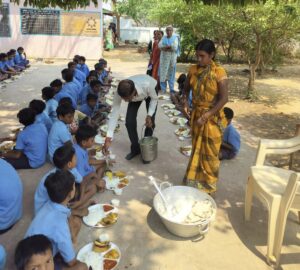 प्रधानमंत्री पूरक पोषण आहार के तहत पौष्टिक स्वादिष्ट भोजन न्योता भोज का आयोजन