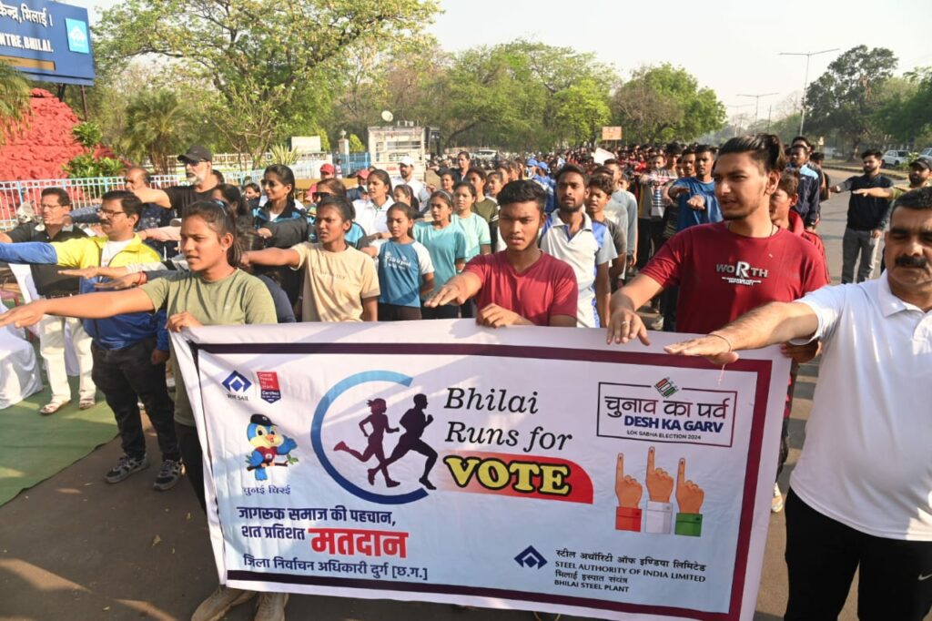 आगामी लोकसभा निर्वाचन में मतदान प्रतिशत् में वृद्धि हेतु निरंतर आयोजन किए जा रहे हैं। इसी कड़ी में आज जिला निर्वाचन अधिकारी सुश्री चौधरी के निर्देशानुसार भिलाई के सेक्टर 9 चौक से ’भिलाई रन्स फॉर वोट’ मैराथान का आयोजन किया गया। यह आयोजन सेक्टर 9 हॉस्पिटल चौक से शुरू होकर ग्लोब चौक में समाप्त हुआ। इस कार्यक्रम में भिलाई निगम आयुक्त ने सभी प्रतिभागियों और मतदाताओं को मतदान की शपथ दिलाई।