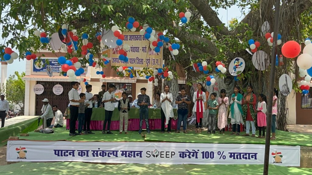 जिले में लगातार मतदाता जागरूकता अभियान चलाया जा रहा है। इसी कड़ी में लोकसभा निर्वाचन 2024 अंतर्गत मतदान को बढ़ावा देने जनपद पंचायत ग्राम पाटन के मर्रा में स्वीप मतदाता जागरूकता कार्यक्रम का आयोजन हुआ। कार्यक्रम में रंगोली, मेंहदी, चित्रकला और सांस्कृतिक कार्यक्रमों के जरिये नागरिकों को मतदान हेतु प्रेरित किया गया। नागरिकों के विशाल समूह के द्वारा मानव श्रृंखला भी बनाई गई। नागरिकों द्वारा विशाल जागरूकता रैली निकाली गई। पाटन का संकल्प महान करेंगे शत्-प्रतिशत मतदान के नारे के साथ उपस्थित अधिकारी कर्मचारी एवं नागरिकों ने मतदान की शपथ ली। कार्यक्रम की विभिन्न प्रतियोगिता में उत्कृष्ट प्रदर्शन करने वाले प्रतिभागियों को पुरस्कृत भी किया गया। रंगोली प्रतियोगिता में चमेली निर्मलकर ने प्रथम पुरस्कार प्राप्त किया, वह आराधना महिला क्लस्टर संगठन ग्राम दरबार मोखली की सदस्य भी हैं। इसी प्रकार मेहंदी में तनु, मुस्कान और नूपुर ने पुरस्कार हासिल किया। पेंटिंग में दीक्षा ने और नुक्कड़ नाटक में गीतांजलि और ग्रुप, कुंती और ग्रुप, तथा मर्रा एग्रीकल्चर कॉलेज ग्रुप ने पुरस्कार प्राप्त किया।
