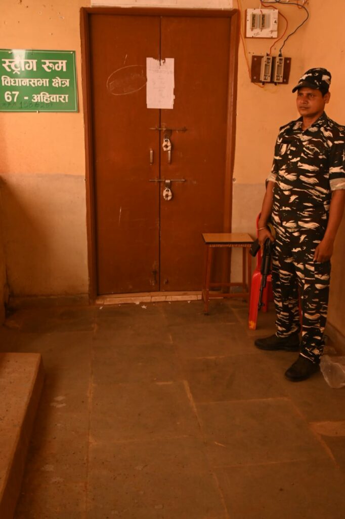 दुर्ग, 8 मई 2024/ लोकसभा निर्वाचन 2024 अंतर्गत लोकसभा क्षेत्र दुर्ग 07 में 7 मई 2024 को तीसरे चरण का मतदान सफलतापूर्वक संपन्न हुआ। मतदान सफलता के पश्चात् ई.व्ही.एम. मशीन एवं व्ही.व्ही.-पैट को श्री शंकराचार्य प्रोफेशनल विश्वविद्यालय जुनवानी भिलाई में बने स्ट्रांग रूम को सील कर दिया गया है। स्ट्रांग रूम की निगरानी के लिए सुरक्षाकर्मी तैनात किए गए है। साथ ही सीसी टीवी कैमरों के माध्यम से ईवीएम मशीनों पर निगरानी रखी जा रही है। केन्द्रीय सशस्त्र बल चौबीसो घंटे स्ट्रांग रूम की निगरानी करेंगे। मतगणना दिवस तक स्ट्रॉग रूम को कड़ी सुरक्षा के बीच स्पेशल फोर्स की निगरानी में ही रखा जाएगा। सामान्य ऑब्जर्वर श्री श्रीकेश लथकर (आईएएस) व श्री एस.बी. शेट्टेनवर (आईएएस) व कलेक्टर एवं जिला निर्वाचन अधिकारी सुश्री ऋचा प्रकाश चौधरी व प्रत्याशियों के प्रतिनिधियों की मौजूदगी में आज सुबह करीब 6 बजे स्ट्रांग रूम को सील किया गया है। इस दौरान एडीएम श्री अरविंद एक्का, उप जिला निर्वाचन अधिकारी एवं अपर कलेक्टर श्री बजरंग दुबे, अपर कलेक्टर श्रीमती योगिता देवांगन, एसडीएम धमधा श्री सोनल डेविड, एसडीएम दुर्ग श्री मुकेश रावटे, संयुक्त कलेक्टर श्री हरवंश मिरी, डिप्टी कलेक्टर श्री दीपक निकुंज, श्री उत्तम ध्रुव, श्री पंचभाई गुरूदत्त एवं अन्य अधिकारी अधिकारीगण मौजूद थे।