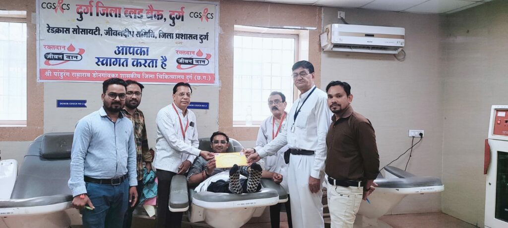 दुर्ग, 18 मई 2024/ जिला चिकित्सालय दुर्ग में आज एक गंभीर मरीज श्री हेमलाल यादव को एबी निगेटिव तीन यूनिट ब्लड की जरूरत थी। दो यूनिट ब्लड चढ़ने के बाद एक यूनिट एबी नेगेटिव ब्लड की जरूरत पड़ी। डोनर नहीं मिलने पर जिला चिकित्सालय दुर्ग के डॉ. आदर्श पांडे ने अपना बहुमूल्य रक्त एबी निगेटिव ब्लड और तिलक भुनेश्वर ने भी एक गंभीर सिकल सेल मरीज को खून की कमी को देखकर एबी पाजिटिव ब्लड रक्तदान किया गया। इस रक्तदान में ब्लड बैंक नोडल अधिकारी डॉ. प्रवीण अग्रवाल, रक्त कोष अधिकारी डॉ. नेहा नलवाया और रेडक्रास सोसायटी के प्रबंध कारनी सदस्य श्री दिलीप ठाकुर, जीवन दीप समिति के सदस्य श्री प्रशांत डोनगांवकर, श्री सतीश चंद्र सुराना, काउंसलर एंथोनी, नर्स श्रीमती तरूणा, लैब इंचार्ज रूपेश, टेक्नीशियन तरन्नुम जहां, दिनेश, कुसुम चंद्राकर, हिमांशु चंद्राकर, माला आदि उपस्थित थे।