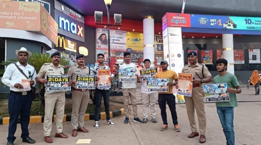 दुर्ग, 19 मई । जितेन्द्र शुक्ला, पुलिस अधीक्षक दुर्ग के निर्देश पर वाहन चालको को वाहन चालन के दौरान हेलमेट एवं सीट बेल्ट लगाने हेतु जागरूक करने दिये गये निर्देश के परिपालन में एवं सुखनंदन राठौर अतिरिक्त पुलिस अधीक्षक (शहर) के मार्गदर्शन में तथा *श्री सतीष ठाकुर, श्री संदानंद विध्यराज उप पुलिस अधीक्षक (यातायात)* के नेतृत्व में यातायात पुलिस दुर्ग द्वारा चलाये जा रहे फॉलो गुड हेबिटस अभियान के तहत 21डे चैलेंज की जानकारी से यातायात जागरूकता कार्यक्रम के माध्यम से दी जा रही है।
