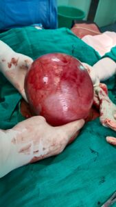 दुर्ग, 01 जून 2024/ स्व. श्री पाडुरंग रामाराव डोनगांवकर जिला चिकित्सालय दुर्ग में जिला जशपुर के मरीज का बच्चा दानी में गोला (फाइब्राइड) को निकाला गया। मरीज को बहुत दिनों से पेट में दर्द, माहवारी में अत्याधिक रक्त स्त्राव, बार-बार पेशाब का रूकना ये शिकायत था, कई प्राइवेट अस्पतालों में इलाज के लिए गयी, अत्यधिक खर्च के कारण ईलाज नहीं करा पायी। इसके बाद जिला अस्पताल दुर्ग में आयी। जहां मरीज का जांच पश्चात् आपरेशन के दौरान 3 किलो का गोला निकाला गया, जो पेट में पुरा फैला हुआ था। छाती तक था जो फेफड़ों को भी दबा रहा था जिससे मरीज को सांस लेने में दिक्कत हो रहा था। मरीज को 20 मई 2024 को भर्ती कर सभी जांच कराने के बाद 30 मई 2024 को ऑपरेशन किया गया।