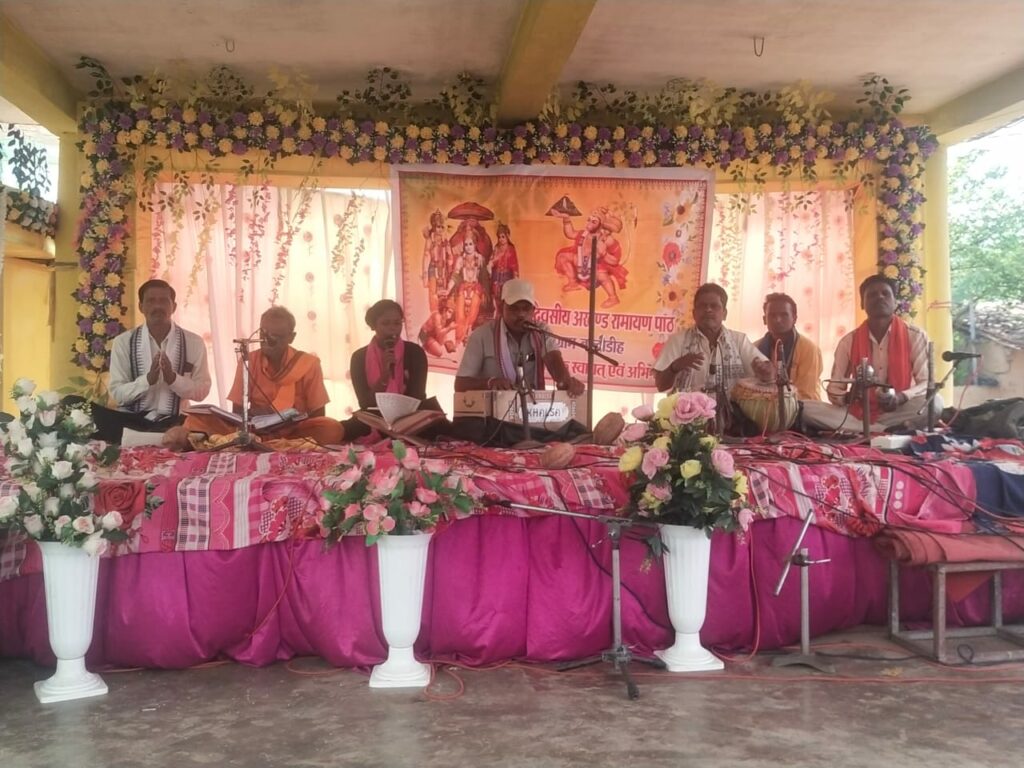 सांकरा जोंक नदी किनारे स्थित ग्राम बल्दीडीह में प्रति वर्ष की भाँती इस वर्ष भी दो दिवसीय रामायण कथा का आयोजन 1 जून से किया गया । दूर-दराज से आए मानस मंडलियों ने अपनी मनमोहक प्रस्तुति दी। ग्राम बल्दीडीह में आयोजित मानस गान व सत्संग करने गांव के अलावा आसपास के गांव के श्रद्धालु भी बड़ी संख्या में पहुंचे थे। हेमराज निषाद ने बताया गया कि सहभागी मानस मंडली गायत्री मानस परिवार लोहराकोट, जय बजरंग मानस परिवार उतेकेल, खुशबू मानस परिवार खुर्शीपार, मानस परिवार रिकोकला , मानस परिवार ठुमसा (पटेवा) , मानस परिवार अंसुला ने अपनी प्रस्तुति दी। इस अवसर पर ग्राम प्रमुख महेश सिन्हा ,रुखमण डडसेना, उत्तर भोई , रामलाल सिन्हा , महेत्तर बरिहा, रामकुमार सिन्हा, राजेश डडसेना ,हेमराज निषाद, उदल सिंह निषाद, राजकुमार निषाद , संतराम निषाद , ग्राम बैगा गणेशराम राव , धीरपाल दीवान , भुनेश्वर यादव , संतोष डडसेना, साधुराम चौहान ,गौतम मेहेर , दिलीप दास, रमेश साहू , उग्रसेन यदु, हरिराम यदु , जगन्नाथ भोई , पंडित अंतर्यामी दास, सुमंत महापात्रा , ग्राम कोटवार बंशीलाल एव बहुत संख्या में ग्रामीण जन उपस्थित रहे।