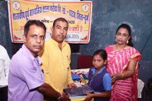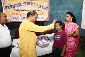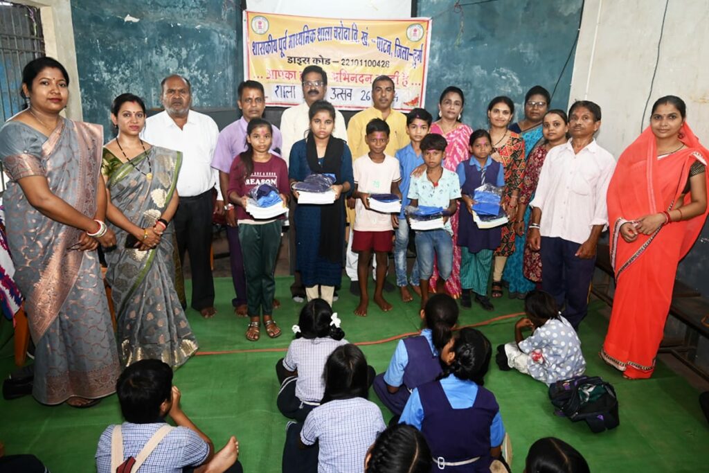 साथ ही साथ उन्हें पुस्तके व गणवेश का वितरण कर उनके उज्जवल भविष्य की कामना की गई। शाला प्रबंधन एवं विकास समिति के अध्यक्ष रामकुमार साहू ने कहा कि आप सभी छात्र-छात्राएं नियमित रूप से विद्यालय आए अनुशासन व्यवस्था बनाए रखें एवं खूब मन लगाकर पढ़ाई करें तथा विद्यालय सहित अपने माता-पिता का नाम रोशन करें।