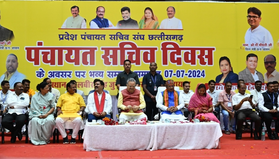 मुख्यमंत्री श्री साय पंचायत सचिव संघ के सम्मान समारोह में हुए शामिल, विष्णु देव साय ने आज राजधानी रायपुर के सरदार बलबीर सिंह जुनेजा इंडोर स्टेडियम में पंचायत सचिव दिवस के अवसर पर प्रदेश पंचायत सचिव संघ छत्तीसगढ़ द्वारा आयोजित सम्मान समारोह में शिरकत की। मुख्यमंत्री ने कहा कि सरकार पंचायत सचिवों के हितों का पूरा ध्यान रखती है। सरकार बनते ही पंचायत सचिवों की अपेक्षाओं को पूरा किया गया। इस अवसर पर मुख्यमंत्री ने घोषणा करते हुए कहा कि प्रदेश पंचायत सचिव संघ द्वारा शासकीयकरण की मांग को पूरा किया जाएगा और इसके क्रियान्वयन के लिए कमेटी का गठन किया जाएगा। मुख्यमंत्री की घोषणा पर संघ के पदाधिकारियों ने मुख्यमंत्री का आभार गजमाला से किया।