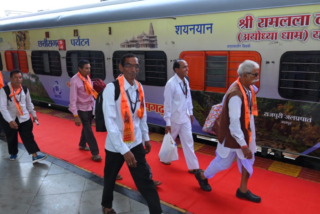 दुर्ग, 23 जुलाई 2024/ श्री रामलला दर्शन योजना के तहत राम भक्तों का जत्था लगातार अयोध्या धाम पहुंच रहा है। दुर्ग संभाग और बस्तर संभाग के 850 श्रद्धालुओं को आज दुर्ग स्टेशन से श्री रामलला दर्शन अयोध्या धाम की यात्रा के लिए रवाना किया गया। रामलला दर्शन पश्चात् तीर्थयात्रियों का दल 26 जुलाई 2024 को मध्य रात्रि स्पेशल ट्रेन से ही दुर्ग वापस पहुंचेगी। तीर्थ यात्रा में दुर्ग जिले के 185 श्रद्धालु जिसमें 139 ग्रामीण एवं 46 श्रद्धालु शहरी क्षेत्र से शामिल है। दुर्ग रेल्वे स्टेशन से दोपहर एक बजे कमिश्नर श्री सत्यनारायण राठौर, एडीएम श्री अरविंद एक्का, सीईओ श्री अश्वनी देवांगन, जिला पंचायत की पूर्व अध्यक्ष श्रीमती माया बेलचंदन ने हरी झण्डी दिखाकर अयोध्या धाम के लिए रवाना किया गया। राम भक्तों को फूल माला पहनाकर दुर्ग स्टेशन से रवाना किया गया। श्रद्धालुओं को यात्रा के दौरान भोजन तथा अयोध्या में रूकने एवं अन्य सभी प्रकार से बेहतर व्यवस्था की गई है, ताकि सभी श्रद्धालुगण खुशी-खुशी दर्शन कर सके। वही सभी तीर्थ यात्रियों ने श्री रामलला दर्शन योजना की प्रशंसा करते हुए कहा कि मुख्यमंत्री