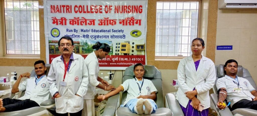 जिला चिकित्सालय दुर्ग के ब्लड बैंक में रक्तदान करने हेतु 31 जुलाई 2024 को मैत्री कॉलेज ऑफ नर्सिंग अंजोरा द्वारा रक्तदान शिविर का आयोजन किया गया। यह शिविर जिला चिकित्सालय दुर्ग के ब्लड बैंक में किया गया। इस रक्तदान शिविर में मैत्री कॉलेज ऑफ नर्सिंग अंजोरा के प्रिंसिपल शबनम डेविड, अध्यापक मिनाक्षी साहू, दीपक साहू, लोविना हेम्ब्रम तथा नर्सिंग के छात्र-छात्राओं के सहयोग से 11 यूनिट बहुमूल्य रक्तदान किया गया। शिविर में मुख्य रूप ब्लड बैंक नोडल अधिकारी डॉ. प्रवीण अग्रवाल, नर्सिंग ऑफिसर तरूणा रावत, काउंसलर टी. एस. एंथोनी, लैब टेक्नोलॉजीस्ट रोशन सिंह, लैब इंचार्ज रूपेश सरपे, लैब टेक्नीशियन तीरथ यादव, सूरज, हिमांशु चंद्राकर, माला देशमुख, प्रशिक्षणार्थी डेमन, वीणा, सुनील, गोवर्धन, भारती की उल्लेखनीय भूमिका और सकारात्मक सहयोग रहा और सभी ने रक्तदाताओं को साधुवाद देकर उनके उज्जवल भविष्य की कामना की।