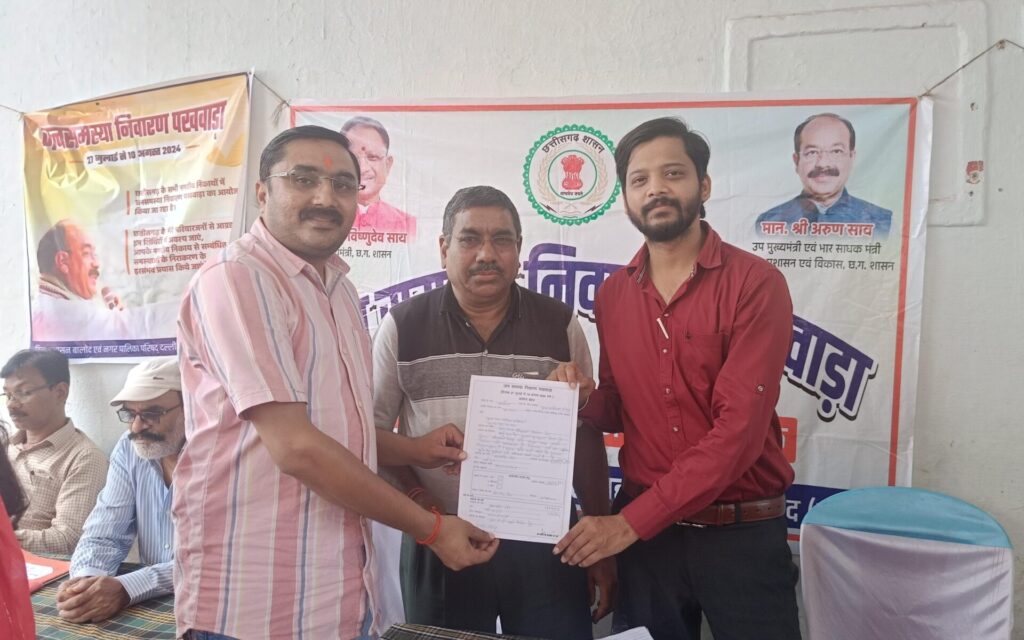 दल्लीराजहरा, राज्य शासन के निर्देशानुसार 10 अगस्त को जन समस्या निवारण पखवाड़ा शिविर वार्ड क्रमांक 26 एवं , 27 के लिए आयोजित शिविर वार्ड क्रमांक 27 जैतखाम कला मंच मे आयोजित की गई l प्रदेश मीडिया प्रभारी अल्पसंख्यक मोर्चा स्वाधीन जैन ने शिविर में आवेदन देकर मांग किया है कि पुराना गुरुद्वारा से सरस्वती शिशु मंदिर तक आरसीसी नाली का निर्माण किया जाए । नाली नहीं होने से लोगों को काफी परेशानियों का सामना करना पड़ रहा है। बारिश का पानी आसपास के दुकानों में भर जाता है कई बार नाली निर्माण को लेकर निकाय में लिखित आवेदन भी दिया जा चुका है लेकिन अब तक यहां नाली का निर्माण नहीं हो सका है। नाली नहीं होने से सड़क पर ऑयल इत्यादि के बहने से दुर्घटना होने की संभावना बनी रहती है।छत्तीसगढ़ शासन के मुख्यमंत्री विष्णु देव साय व नगरीय निकाय छत्तीसगढ़ शासन मंत्री अरुण साव द्वारा पूरे छत्तीसगढ़ में जन समस्या निवारण पखवाड़ा का शिविर लगाया गया है जिसका लाभ पूरे वार्ड वासियों को मिल रहा है और वही गंभीर समस्या का निराकरण तत्काल भी किया जा रहा है। जन समस्या निवारण शिविर में लोगों ने मांगों एवं समस्याओं के संबंध में आवेदन प्रस्तुत कियाl इस दौरान संबंधित विभाग के अधिकारियों कर्मचारियों द्वारा कुछ आवेदनों का मौके पर त्वरित निराकरण करते हुए शिविर में राशन कार्ड, एवं आयुष्मान कार्ड का वितरण किया गया l