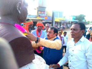 जंहा भुतपूर्व विधायक स्व. दाऊ केजू राम वर्मा के प्रतिमा में माल्यार्पण किया!