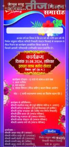 रिसाली – निर्मल संयुक्त महिला समिती रिसाली सेक्टर के तत्वाधान मे 31 अगस्त की दोपहर 12 बजे से सन्ध्या 6 बजे तक तीज मिलन का कार्यक्रम इस्पात क्लब मरोदा सेक्टर रिसाली में आयोजित् किया गया है।जिसमे महिलाओ के लिये. बाल पासिंग . बम ब्लास्ट. सोला सिंगार (तीज क्वीन) चयन किया जायेगा ।कार्यक्रम की अतिथिगण श्रीमती रमशीला साहू (पूर्व केबिनेट मंत्री ),श्रीमती प्रतिमा चन्द्राकर (पूर्व विधायक दुर्ग ग्रामीण) ,श्रीमती सुनंदा चन्द्राकर (पार्षद नगर निगम रिसाली), श्रीमती प्रीति बाला (समाज सेविका) ,श्रीमती मधु गजपाल (समाज सेविका) ,श्रीमती सरला पोद्दार (समाज सेविका), श्रीमती अरूणा वर्मा (समाज सेविका) , होगी