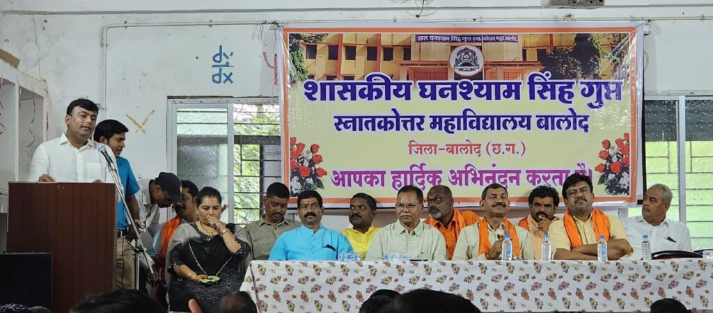 इस अवसर पर नवनियुक्त जन भागीदारी अध्यक्ष अमित चोपड़ा ने भी अपनी बातें रखते हुए कहा कि मैं इसी महाविद्यालय से निकलकर आज यहां पर पहुंचा हूं यह मेरा सौभाग्य है और मैं छात्र हित में जो समस्याएं हैं उससे अवगत हूं और जो समस्याएं मेरे सामने आएगी उसको पूरा करने के लिए पूरी ताकत लगाऊंगा, इस कॉलेज से निकलकर भी हमारे अग्रज लोग बड़ी-बड़ी जगह पर अपना नाम स्थापित कर चुके हैं हम उनके पास जाकर,बालोद के व्यापारियों के बीच जाकर जो यहां से पढ़कर निकले हैं उनसे जन सहयोग लेकर भी इस कॉलेज को आगे बढ़ने का प्रयास करेंगे आगे अमित चोपड़ा ने इस नवीन दायित्व देने के लिए सभी वरिष्ठ जनों का आभार व्यक्त किया महाविद्यालय के अध्यापकों का स्टाफ का भी आभार व्यक्त किया आज के मान सम्मान देने के लिए और कहां की आप सब के मार्गदर्शन में इस कॉलेज को एक नई दिशा देने की और काम करेंगे