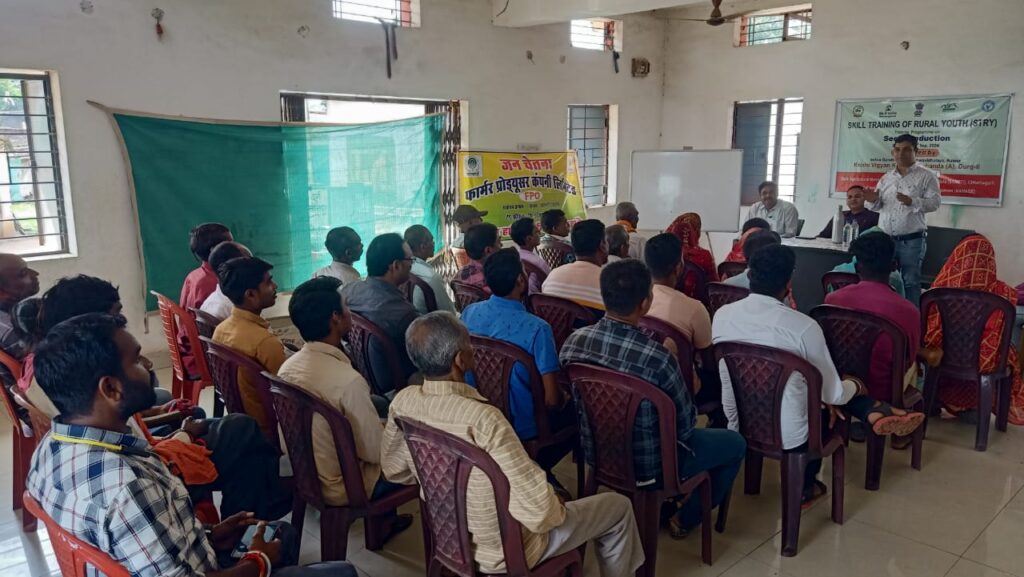दुर्ग, 30 अगस्त 2024/ग्रामीण युवाओं को कौशल प्रशिक्षण कार्यक्रम के अंतर्गत मैनेज हैदराबाद द्वारा प्रायोजित, डॉ. एस.एस. टूटेजा, निदेशक विस्तार सेवायें, इंदिरा गांधी कृषि विश्वविद्यालय, रायपुर के निर्देशन में व डॉ. दिप्ती झा, नोडल अधिकारी के मार्ग दर्शन में कृषि विज्ञान केन्द्र, पाहंदा (अ), दुर्ग द्वारा विकासखण्ड पाटन के ग्राम सोनपुर में ’’बीज उत्पादन’’ पर 6 दिवसीय प्रशिक्षण कार्यक्रम का आयोजन किया जा रहा है। कृषि विज्ञान केन्द्र के वरिष्ठ वैज्ञानिक एवं प्रमुख डॉ. विजय जैन ने बताया कि ग्रामीण युवाओं को उद्यमी एवं व्यवसायिक कौशल प्रदान कर उन्हें रोजगार देने वाले उद्यमी के रूप में तैयार करना इस प्रशिक्षण का उद्देश्य है। किसान फसल उत्पादन तो करते ही हैं पर उसी कार्य को थोड़ा तकनीकी रूप से परिष्कृत कर ले तो उत्पादित फसल को बीज के रूप में बेच कर व्यवसायिक आय और अधिक लाभ प्राप्त कर सकते हैं। इस प्रशिक्षण कार्यक्रम के प्रभारी केन्द्र के वैज्ञानिक डॉ. ईश्वरी कुमार साहू ने बताया कि इस प्रशिक्षण में बीज उत्पादन की बारीकियों में ’’हृृष्टपुष्ट बीज’’ कैसे पैदा होगा इसके लिये उन्नत कृषि तकनीकों के प्रशिक्षण के लिये इंदिरा गांधी कृषि विश्वविद्यालय, रायपुर से डॉ. अभिनव साव, डॉ. नीतिश तिवारी, बीज प्रक्रिया केन्द्र के प्रभारी श्री एस.के. बेहरा, बीज प्रशिक्षण प्रभारी श्रीमती रामेश्वरी नेताम, कृषि विभाग की योजनाओं के लिये मुकेश मढरिया वरिष्ठ कृषि विकास अधिकारी सहित केन्द्र के वैज्ञानिक गण डॉ. ललिता रामटेके, डॉ. कमल नारायण वर्मा, डॉ. नीतू स्वर्णकार, डॉ. विनय कुमार नायक भी कृषकों को जैविक बीज उत्पादन, मृदा स्वास्थ की बीज उत्पादन में भूमिका, कृषि यंत्रों का कम आय में अधिक उत्पादन के लिये प्रयोग, सब्जी बीज उत्पादन पर प्रशिक्षण दिये।