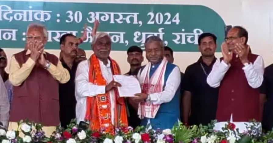 झारखंड के पूर्व मुख्यमंत्री चंपाई सोरेन बीजेपी में शामिल हो गए. चंपाई सोरेन के स्वागत के लिए रांची के शाखा मैदान में अभिनंदन व मिलन कार्यक्रम रखा गया. इस दौरान मंच पर चुनाव प्रभारी शिवराज सिंह चौहान, चुनाव सह प्रभारी हिमंत बिस्वा शर्मा, प्रदेश अध्यक्ष बाबू लाल मरांडी समेत झारखंड बीजेपी के तमाम नेता मौजूद रहे. इस मंच पर चंपाई सोरेन के बेटे बाबूलाल सोरेन भी मौजूद रहे.