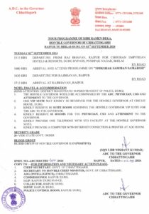 दुर्ग, महामहिम राज्यपाल श्री रमेन डेका 03 सितम्बर को भिलाई प्रवास पर रहेंगे। इस दौरान वे शिक्षक सम्मान समारोह में मुख्य अतिथि के रूप में शिकरत करेंगे। प्राप्त जानकारी के अनुसार राज्यपाल श्री डेका 03 सितम्बर 2024 को अपरान्ह 3.15 बजे सड़क मार्ग द्वारा राजभवन रायपुर से प्रस्थान कर अपरान्ह 4.00 बजे चौहान इम्पेरियन हॉटल रिसार्ट दुर्ग बायपास रोड पुष्पक नगर भिलाई पहुंचेंगे। महामहिम यहां पर शिक्षक सम्मान समारोह में शिरकत करेंगे। कार्यक्रम पश्चात् राज्यपाल श्री डेका अपरान्ह 4.30 बजे सड़क मार्ग द्वारा राजभवन रायपुर के लिए प्रस्थान करेंगे।