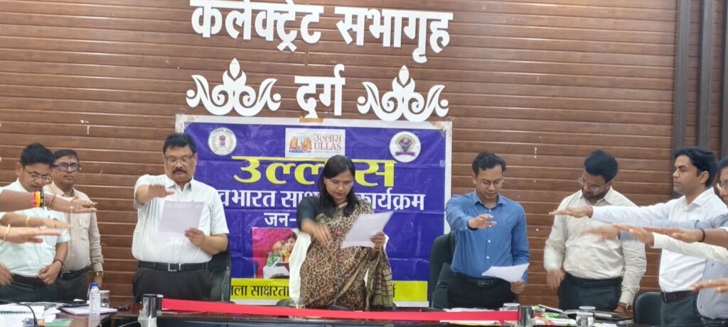 दुर्ग, 03 सितंबर कलेक्टर सुश्री ऋचा प्रकाश चौधरी के निर्देशानुसार एवं जिला शिक्षा अधिकारी श्री अरविंद मिश्रा के मार्गदर्शन में 8 सितंबर अंतर्राष्ट्रीय साक्षरता दिवस के उपलक्ष्य में जिले में 1 सितंबर से 8 सितंबर 2024 तक साक्षरता सप्ताह का आयोजन किया जा रहा है। आज कलेक्टर सुश्री चौधरी ने समस्त विभाग के जिला अधिकारियों को उल्लास की शपथ दिलाई। साक्षरता सप्ताह अंतर्गत प्रतिदिन विभिन्न गतिविधियां जैसे जागरूकता रैली, उल्लास शपथ, नुक्कड़ नाटक, शैक्षणिक संस्थानों में विभिन्न प्रतियोगिताओं आदि का आयोजन किया जा रहा है। इसी कड़ी में 1 सितंबर 2024 को स्वच्छता मितानों के द्वारा वाहन रैली निकालकर कार्यक्रम का आगाज किया गया, जिसे नगर निगम रिसाली आयुक्त श्रीमती मोनिका वर्मा द्वारा हरी झंडी दिखाकर रवाना किया गया।