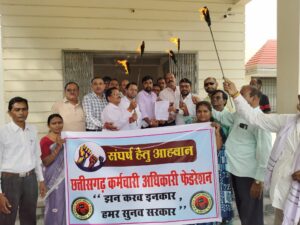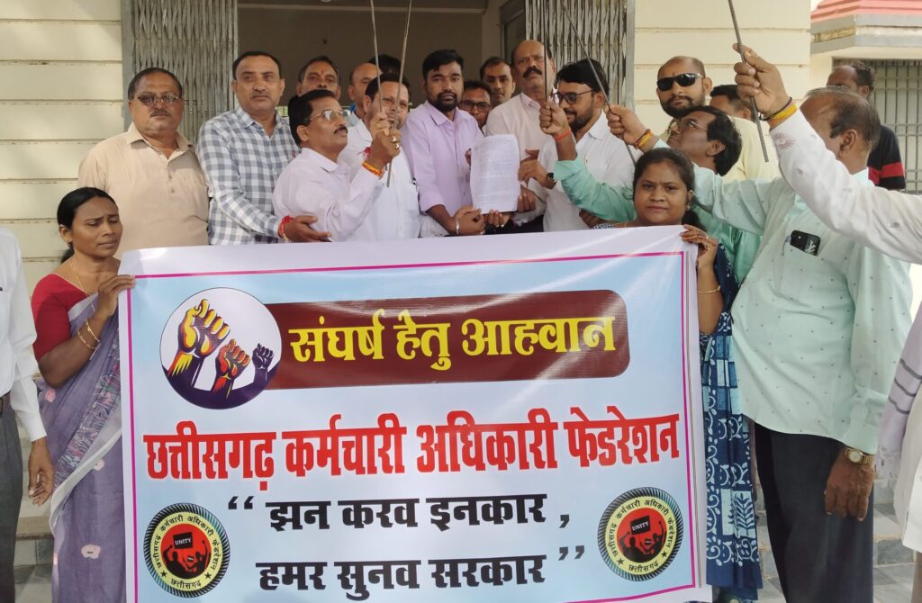 कर्मचारी अधिकारी फेडरेशन के प्रांतीय आह्वान पर डी ए, एच आर ए, चार स्तरीय वेतनमान,वेतन विसंगति सहित विभिन्न मांगों को लेकर कर्मचारी अधिकारी फेडरेशन ब्लाक शाखा पाटन द्वारा आंदोलन स्थल (जनपद पंचायत पाटन के सामने)आज दिनांक 11/09/2024 को एक दिवसीय धरना, व मशाल रैली निकालकर अनुविभागीय अधिकारी राजस्व पाटन को माननीय मुख्यमंत्री छ ग शासन के नाम से ज्ञापन सौंपा गया