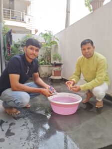 इसके बाद टब की जल एवम मिट्टी का उपयोग पौधारोपण कर किया गया ।