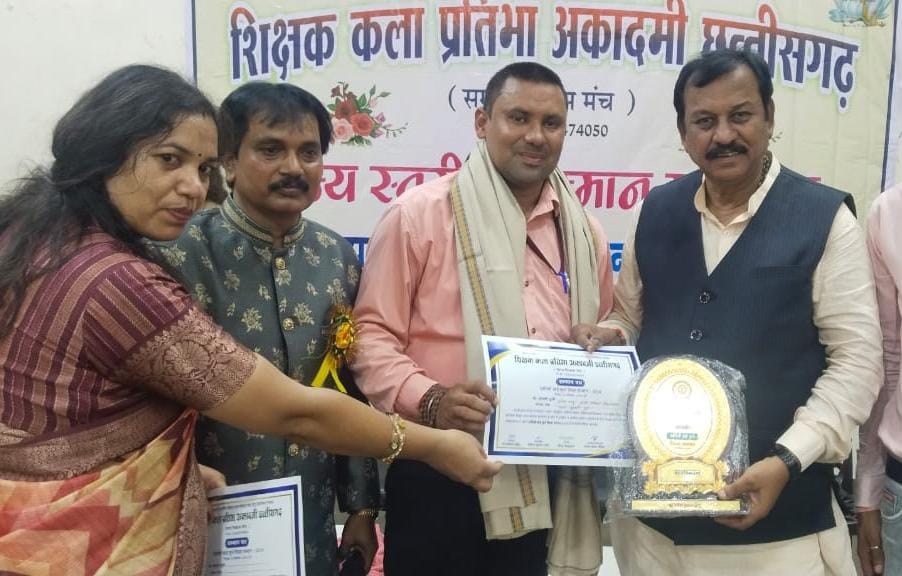शिक्षक कला प्रतिभा अकादमी छत्तीसगढ़ समग्र विकास मंच संस्था के द्वारा शिक्षा साहित्य कला संस्कृति नारी सशक्तिकरण एवं शिक्षण में नवाचार तथा समाज सेवा के क्षेत्र में उत्कृष्ट कार्य करने वाले शिक्षकों तथा राज्य के वरिष्ठ साहित्यकार पत्रकार एवं उत्कृष्ट व्यक्तियों का सम्मान किया गया कार्यक्रम के संस्थापक संजय कुमार मैथिल राष्ट्रपति पुरस्कृत शिक्षक तथा अध्यक्ष श्रीमती मीना भारद्वाज एवं संस्था के समस्त पदाधिकारी की उपस्थिति एवं मेहनत से सफल कार्यक्रम संपन्न हुआ कार्यक्रम के मुख्य अतिथि दुर्ग लोकसभा के सांसद माननीय श्री विजय बघेल जी कार्यक्रम की अध्यक्षता माननीय श्री गजेंद्र यादव जी विधायक दुर्ग शहर तथा अतिविशिष्ट अतिथि श्री ललित चंद्राकर जी विधायक दुर्ग ग्रामीण,श्रीमती निधि चंद्राकर अध्यक्ष उड़ान नई दिशा , श्री रवि सिंगौर युवा जिला अध्यक्ष लोधी समाज दुर्ग तथा रायपुर से श्रीमती यमुना शाहनी धमतरी से ज्वाला प्रसाद बंजारे जी,शिव कुमार अंगारे, सुषमा हिरवानी डॉक्टर शीला शर्मा गौरी कश्यप सुषमा पंडयाकेआतिथ्य में खालसा पब्लिक स्कूल दुर्ग के सभागार में भव्य रूप से संपन्न हुआ जिसमे दुर्ग जिले के ग्राम उरला से हरीश साहू का शासन द्वारा चल रहे योजना रानी लक्ष्मी बाई आत्मरक्षा के लिए कराते के क्षेत्र मे सावित्री बाई फुले शिक्षा सम्मान –2024 से कार्यक्रम के मुख्य अतिथि सांसद विजय बघेल द्वारा सम्मानित किया गया व उज्जवल भविष्य की कामना हरीश साहू ने सभी अतिथियों का आभार व्यक्त किया ।कार्यक्रम में पूरे राज्य भर के विभिन्न जिलों की शिक्षकों की उपस्थिति रही ।