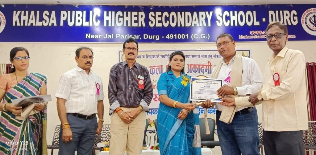 शिक्षक कला प्रतिभा अकादमी छत्तीसगढ़ ने राज्य के विभिन्न जिलों से आए उत्कृष्ट प्रतिभावान शिक्षकों को सम्मानित किया। खालसा पब्लिक स्कूल दुर्ग छत्तीसगढ़ में आयोजित कार्यक्रम में मुख्य अतिथि के रूप में