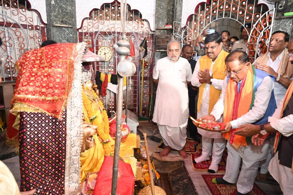 दुर्ग, 27 सितंबर 2024/ मुख्यमंत्री श्री विष्णुदेव साय आज नगर पालिक निगम दुर्ग अंतर्गत विकास कार्यों के भूमिपूजन के पहले दुर्ग के प्राचीन चण्डी मंदिर में पूजा अर्चना कर प्रदेश वासियों के लिए सुख-समृद्धि और खुशहाली की कामना की। इस अवसर पर उपमुख्यमंत्री श्री अरूण साव, दुर्ग शहर विधायक श्री गजेन्द्र यादव, पूर्व विधायक श्री लाभचंद बाफना, आयुक्त श्री एस.एन. राठौर, कलेक्टर सुश्री ऋचा प्रकाश चौधरी, एसपी श्री जितेन्द्र शुक्ला भी मौजूद थे।