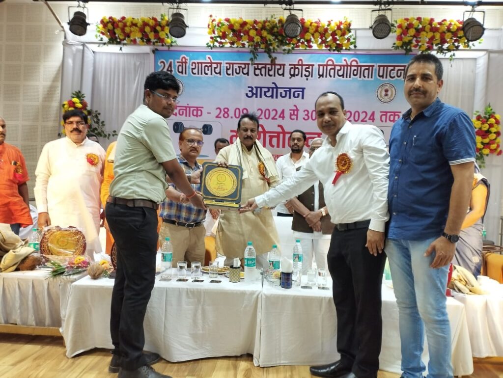 पाटन, 24 वीं शालेय राज्य स्तरीय भारोत्तोलन प्रतियोगिता का आयोजन पाटन में शनिवार की शुरू हुआ। इसका समापन 29 सितंबर को होगा। 28 सितंबर शनिवार सुबह 11:00 बजे से आडीटोरियम के प्रतियोगिता का शुरुआत अतिथियों ने किया। इससे पहले खेल ध्वजारोहण किया गया इसके बाद स्पर्धा में शामिल पांचों संभाग के खिलाड़ियों ने मार्च पास्ट कर अतिथियों को सलामी दी है। इस प्रतियोगिता में अंदर 17 ओर अंडर 19 के पांच भाग के खिलाड़ी शामिल होंगे। बालक और बालिका दोनो वर्ग का लिए यह स्पर्धा आयोजित है। उद्घाटन कार्यक्रम के मुख्य अतिथि सांसद विजय बघेल थे । अध्यक्षता – विधायक अहिवारा डोमनलाल कोर्सेवाड़ा ने किया। विशेष अतिथियों में भाजपा के जिला अध्यक्ष जितेंद्र वर्मा, श्रीमती हर्षालोकमणी चन्द्राकर जिला पं. सदस्य दुर्ग, श्रीमती राम बाई सिन्हा अध्यक्ष जनपद पंचायत पाटन, लोकमणी चन्द्राकर मण्डल अध्यक्ष उत्तर पाटन, लालेश्वर साहू मण्डल अध्यक्ष दक्षिण पाटन , नगर पंचायत के नेता प्रतिपक्ष योगेश निक्की भाले, भाजपा नेता सुरेंद्र वर्मा, नगर अध्यक्ष होरी लाल देवांगन, युवा मंडल अध्यक्ष कुणाल शर्मा पोसूराम निर्मलकर थे। अतिथियों के स्वागत के बाद स्वागत भाषण डी ई ओ अरविंद मिश्रा ने दिया।