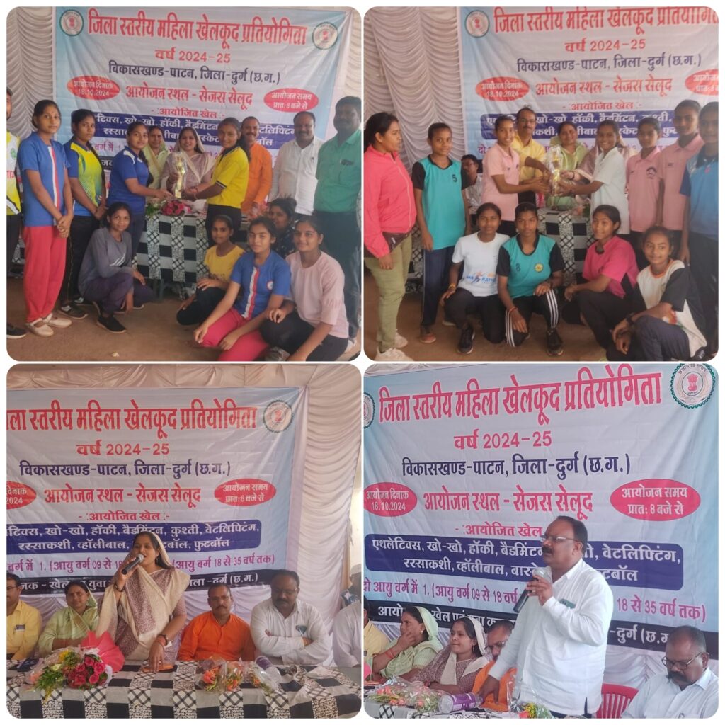 पाटन, सेलुद के सेजस स्कूल मैदान में जिला स्तरीय महिला खेलकूद प्रतियोगिता का आयोजन खेल एवं युवा कल्याण विभाग दुर्ग द्वारा किया गया। जिसके पुरुस्कार वितरण समारोह के मुख्य अतिथि जिला पंचायत सदस्य हर्षा चंद्राकर,अध्यक्षता मध्य पाटन मंडल अध्यक्ष खेमलाल साहू,
