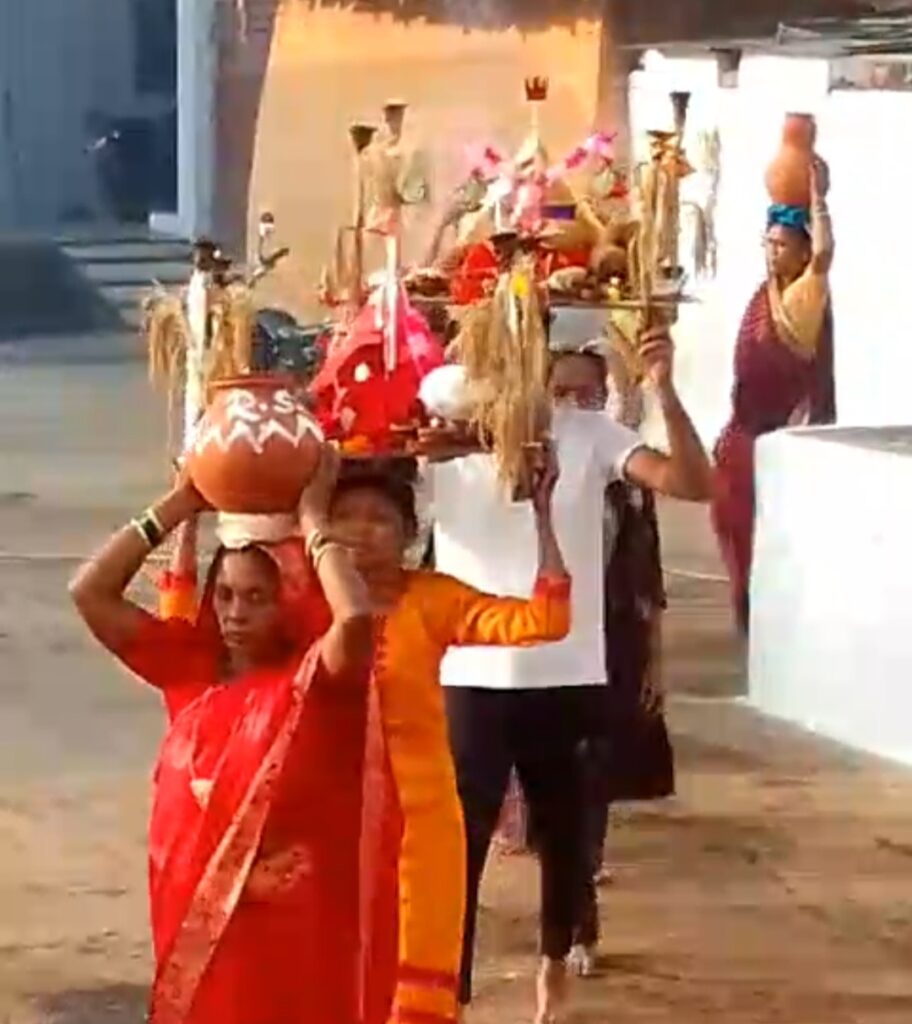 जिसमें ग्रामीणों ने विधिवत पूजा पाठ कर शोभायात्रा गांव में गली भ्रमण करते हुए गांव शीतला तालाब ( बड़े तरिया ) में