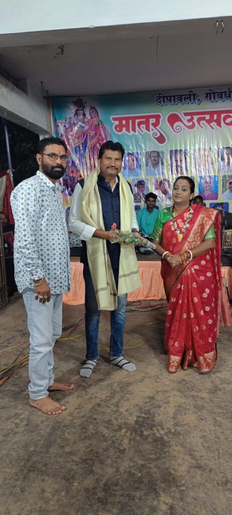 गुण्डरदेही/ ग्राम भरदाखूर्द में मातर उत्सव पर यादव समाज द्वारा सहाड़ा देव स्थल पर दोपहर में गौ माता की पूजा पाठ करके मातर उत्सव भ्रमण किया गया एवम रात्रि में कर्मचारी समिती द्वारा सांस्कृतिक कार्यक्रम ,, नवा किसान,, भिलाई के संचालक पुष्पा शंकर साहू ने अपना प्रस्तुति दी इस कार्यक्रम के मुख्य अतिथि पूर्व सांसद प्रतिनिधि व महामंत्री थानसिंह मंडावी जी का शाल, श्रीफल भेंट कर सम्मान किया गया